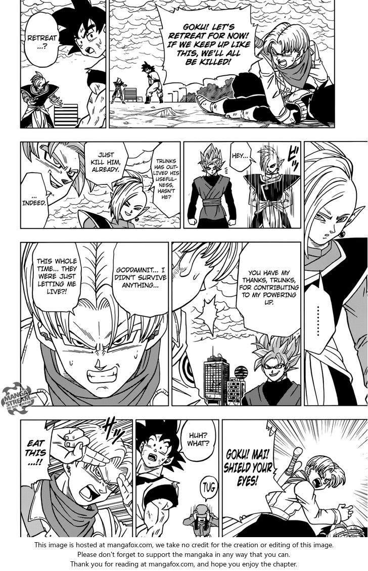Goku, Vegeta, and Trunks are confused to see Zamasu standing next to Black, who was supposed to be Zamasu inside Goku’s body.