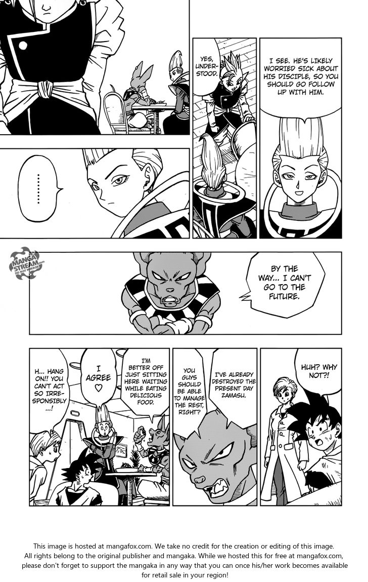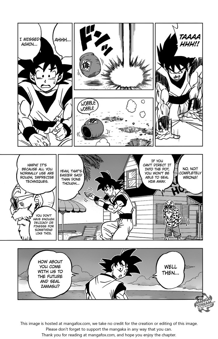 Kaiōshin suddenly stands up, though he explains that he is simply going to visit Gowasu in Universe 10 to express his condolences and support. and also to inform him of the latest developments; However, Whis doesn’t seem to fully trust him. Beerus scolds Goku and the others for helping Zamasu in this timeline, but the rest is up to them. Goku wonders what the future Whis will do, but Whis explains that the works of angels are simply put on hold if their respective god dies, leaving them with no godly allies in the future timeline. Vegeta leaves, refusing to use a technique like Mafūba, determined to kill him in his own way regardless of Super Saiyan Rosé.