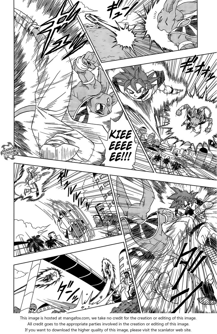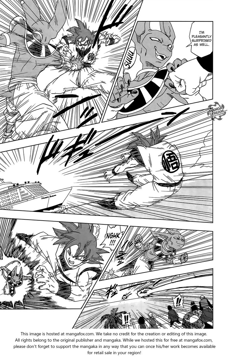 Beerus seems mildly impressed, though Goku’s friends and family look a bit confused. Gohan is unable to sense his father’s ki, proving that he has truly become a god. Goku makes Beerus promise not to destroy Earth if he wins the fight; Beerus agrees, but expects to win handily.