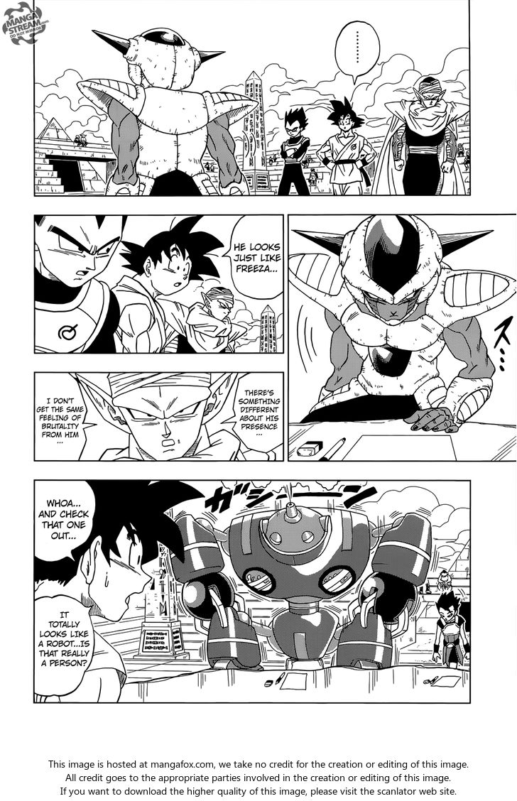 Vados asks the contestants to take their seats. Goku comments on the Freeza-style fighter, though Piccolo notes that he’s a bit different and doesn’t feel evil. Goku also thinks about the guy who looks like a robot.