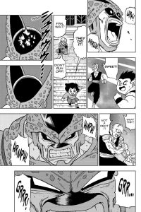 The chapter opens with Goten and Trunks continuing their fight against Cell Max. Despite their best efforts, they fail to defeat him. Cell Max is too powerful and too durable.
